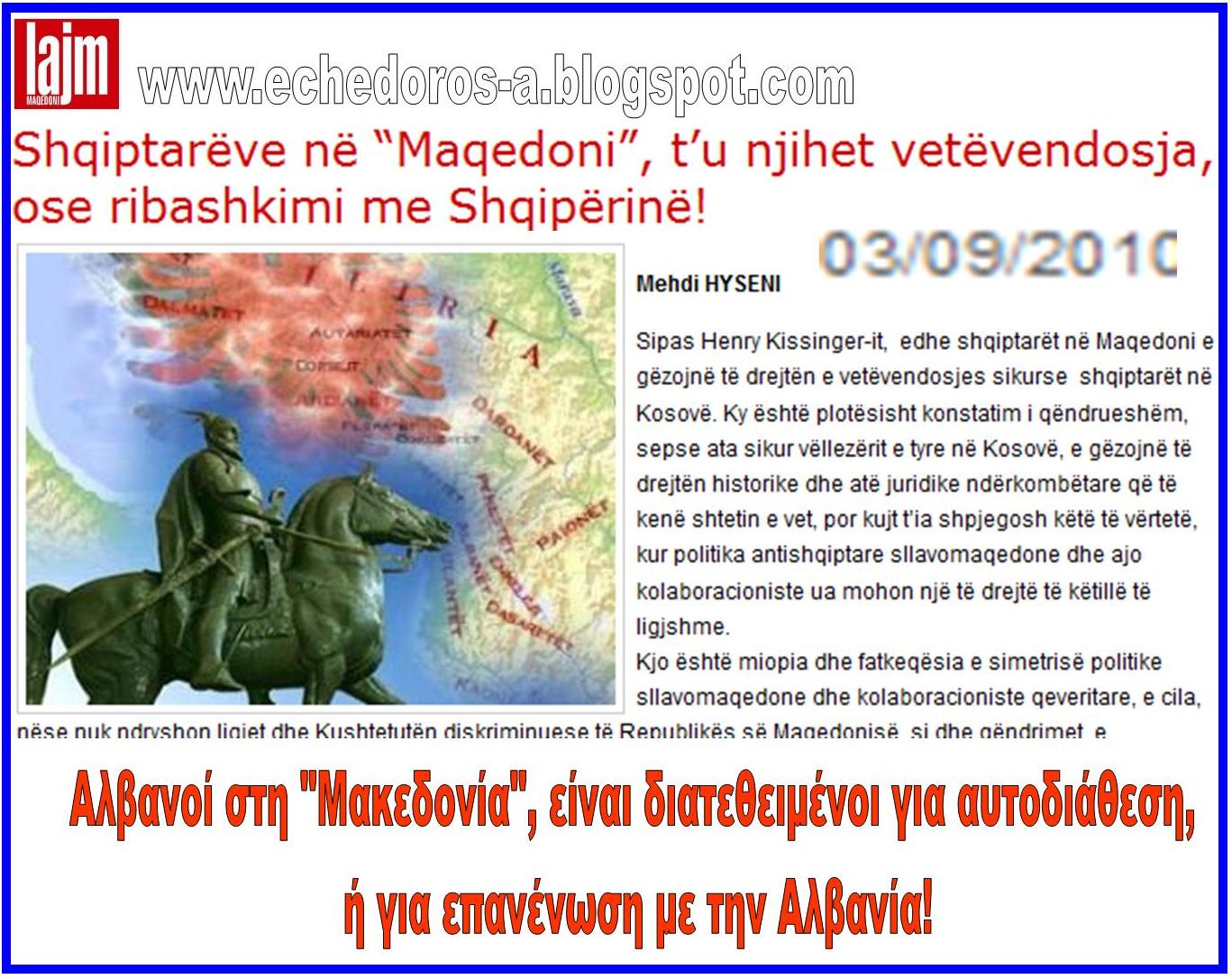 Σύμφωνα με τον Χένρυ Κίσινγκερ, οι Αλβανοί των Σκοπίων έχουν το δικαίωμα της αυτοδιάθεσης, όπως οι Αλβανοί του Κοσσυφοπεδίου.