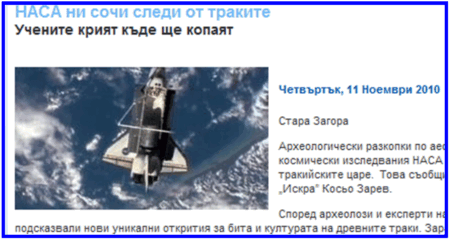 Ανασκαφές σε περιοχές, όπου έχουν εντοπιστεί υπολείμματα αρχαίου πολιτισμού από εξειδικευμένους δορυφόρους της NASA, θα ξεκινήσουν οι αρχαιολόγοι, την ερχόμενη άνοιξη στην αρχαία θρακική περιοχή της Κοιλάδας των Βασιλέων, στην Βουλγαρία, ανακοίνωσε σήμερα ο επικεφαλής του Ιστορικού Μουσείου «Ίσκρα» του Καζαντλάκ, όπως γράφει η βουλγαρική ‘Στάνταρτ’.