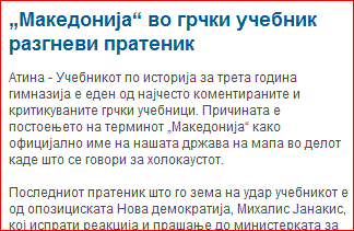 Τίτλος: «„Македонија“ во грчки учебник разгневи пратеник»