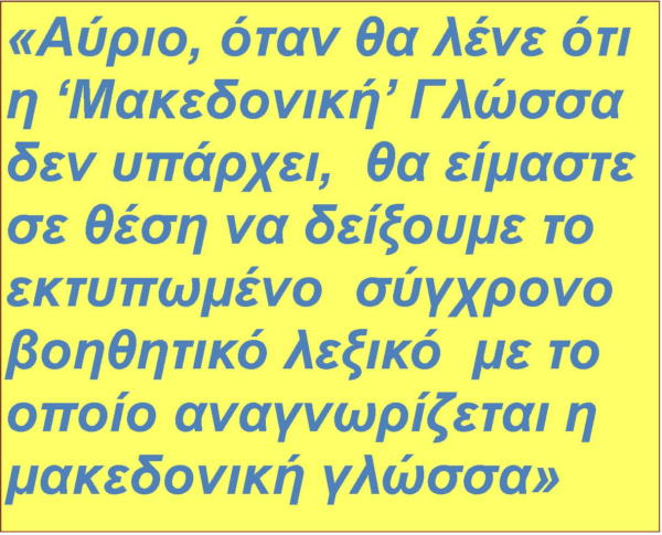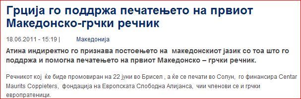 »Η Αθήνα αναγνωρίζει εμμέσως την ύπαρξη της ‘μακεδονικής’ γλώσσας αφού υποστήριξε και βοήθησε στην εκτύπωση του πρώτου «Μακεδονo-Ελληνικού» λεξικού.