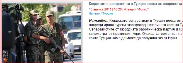Αυτονομιστές του Κουρδικού Εργατικού Κόματος (PKK) έχουν προξενήσει σοβαρές βλάβες σε αγωγούς φυσικού αερίου, 5 χιλιόμετρα από την επαρχία Agri.