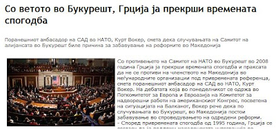Η Ελλάδα παραβίασε την ενδιάμεση συμφωνία του 1995 για να εμποδίσει την FYROM να ενταχθεί στο ΝΑΤΟ κατά τη Σύνοδο του Βουκουρεστίου το 2008.