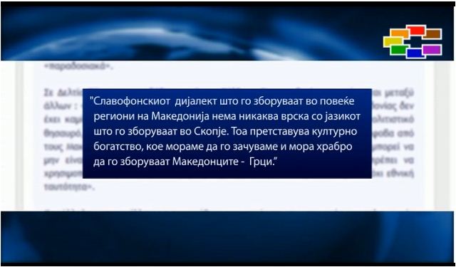 «Η σλαβόφωνη διάλεκτος που ομιλείται σε διάφορες περιοχές της Μακεδονίας δεν έχει καμία σχέση με τη γλώσσα που μιλούν στα Σκόπια, Είναι ένας πολιτιστικός θησαυρός που πρέπει να διατηρήσουμε και να μιλάνε με τόλμη οι Μακεδόνες – Έλληνες»
