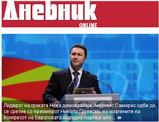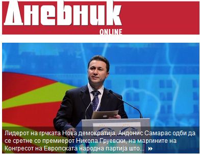 Ο ηγέτης της Νέας Δημοκρατίας της Ελλάδας, Αντώνης Σαμαράς, αρνήθηκε να συναντηθεί με τον πρωθυπουργό Νίκολα Γκρούεφσκι, στο περιθώριο του Συνεδρίου του Ευρωπαϊκού Λαϊκού Κόμματος που πραγματοποιήθηκε στη Μασσαλία της Γαλλίας.