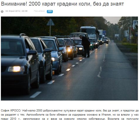 Σημειώνεται ότι από το 2011 που η Βουλγαρία εισήχθη στο σύστημα πληροφοριών Σένγκεν, έχουν εντοπιστεί πολλά οχήματα τα οποία ήρθαν στη χώρα και ήταν κλεμμένα από άλλα κράτη.