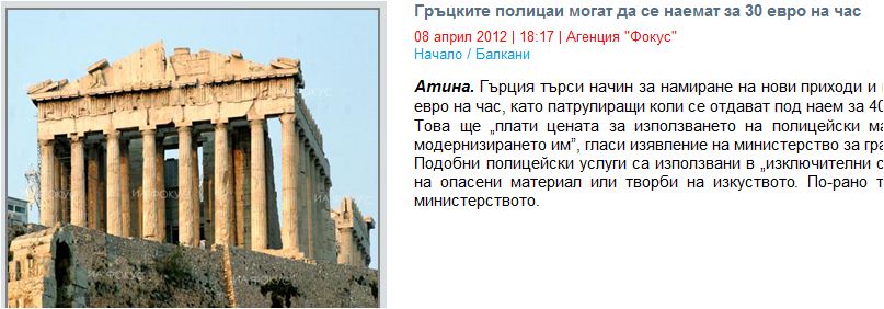 Η Ελλάδα επιδιώκει να βρει νέα έσοδα με την παροχή ασφάλειας, νοικιάζοντας αστυνομικούς με 30 ευρώ την ώρα, ενώ τα περιπολικά θα μπορούν να ενοικιαστούν προς 40 ευρώ την ώρα.