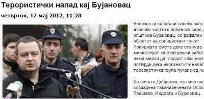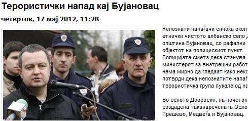 Άγνωστοι ένοπλοι στις 3 τα ξημερώματα επιτέθηκαν κατά του φυλακίου της σερβικής αστυνομίας στο χωριό Ντόμπροσιν που ανήκει στο δήμο Μπουγιάνοβατς και κατοικείται από οικογένειες αλβανικής καταγωγής.