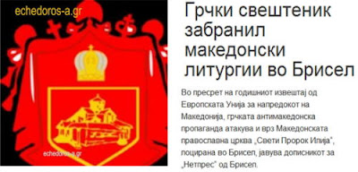 Την παραμονή της ετήσιας έκθεσης προόδου της Ευρωπαϊκής Ένωσης για τη FYROM, η ελληνική προπαγάνδα επιτέθηκε στη «Μακεδονική» Ορθόδοξη Εκκλησία του Αγίου προφήτη Ηλία που βρίσκεται στις Βρυξέλλες, σημειώνει το Netpress από τις Βρυξέλλες.