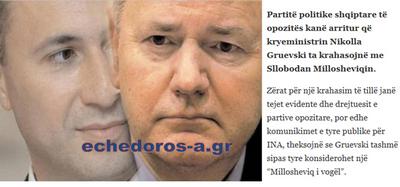 Τα αλβανικά πολιτικά κόμματα της αλβανικής αντιπολίτευσης έχουν καταφέρει να παρομοιάσουν τον πρωθυπουργό Νίκολα Γκρούεφσκι με τον πρώην Σέρβο πρόεδρο Σλόμπονταν Μιλόσεβιτς.