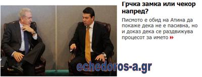 Αυτή είναι η άποψη ορισμένων διπλωματών και καθηγητών προς την εφημερίδα μας (Dnevnik) που ανέλυσαν τις προτάσεις τις οποίες ο Έλληνας Υπουργός Εξωτερικών παρουσίασε στον Πόποσκι, προκειμένου να βελτιωθούν οι σχέσεις μεταξύ των δύο γειτονικών χωρών καθώς και την επίλυση του ζητήματος της ονομασίας, γράφει η σλαβική εφημερίδα.