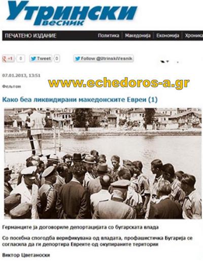 Από την πρώτη ημέρα των εορτών των Χριστουγέννων η εφημερίδα των Σκοπίων «Ούτρινσκι Βέσνικ» άρχισε να δημοσιεύει μια νέα σειρά που χαρακτηρίζεται ως αντι-βουλγαρική: «Πως εκκαθαρίστηκαν οι Εβραίοι των Σκοπίων».