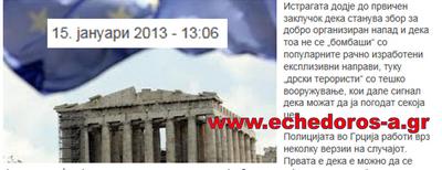 Σε επίπεδο κόκκινου συναγερμού έχει τεθεί η Ελλάδα, μετά την επίθεση χθες στα γραφεία του κυβερνώντος κόμματος της Νέας Δημοκρατίας, γράφει το δημοσίευμα των Σκοπίων.