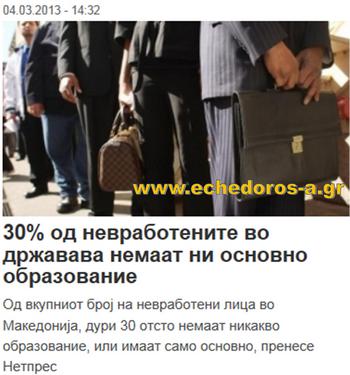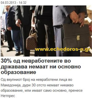 Από το συνολικό αριθμό των ανέργων στο κράτος των Σκοπίων, το 30 τοις εκατό δεν έχει τελειώσει καμία εκπαίδευση ούτε αυτήν τη βασική, σημειώνει το σλαβικό Νετπρες.