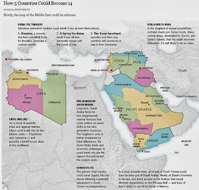 Η πιο εντυπωσιακή ιδέα φαίνεται η βαλκανιοποίηση της Σαουδικής Αραβίας. Το πετρέλαιο ενδέχεται να εξαντληθεί σε 20 χρόνια και η κοινωνική πίεση σε συνδυασμό με το παράφρων επίπεδο διαφθοράς και ένα ποσοστό ανεργίας στο 30 τοις εκατό θα φέρει κοινωνικό βρασμό και γεωγραφικό διαχωρισμό.