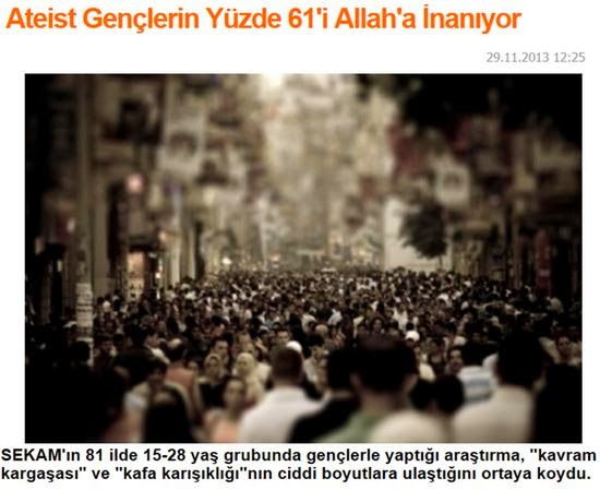 Ότι οι νέοι Τούρκοι παρότι που «δηλώνουν άθεοι, πιστεύουν στην ύπαρξη του Θεού, αλλά όχι στον Αλλάχ των μουσουλμάνων». Και αυτοί αποτελούν ένα σημαντικό τμήμα του λαού, που δεν καθορίζει τους εαυτούς τους ως ‘ισλαμιστές’.