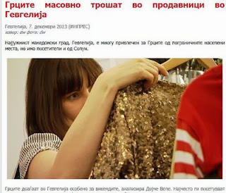 Στη νότια πόλη των Σκοπίων, δίπλα στο μεθοριακό σταθμό των Ευζώνων, είναι η Γευγελή, η οποία είναι ελκυστική για τους Έλληνες των παραμεθορίων πόλεων, αλλά και αυτής της Θεσσαλονίκης, σημειώνει το νοτιοσλαβικό δημοσίευμα.