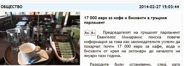 Ήταν αδύνατο να μην γίνει ‘διεθνές’ ζήτημα ο καφές και τα μπισκότα των Ελλήνων βο(υ)λευτών που κόστισαν, εν μέσω ...κρίσης, το περασμένο φθινόπωρο τον ετήσιο μισθό ενός ‘καλοπληρωμένου’ δημοσίου υπαλλήλου.