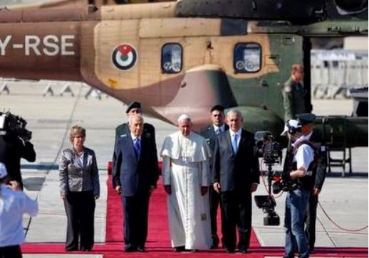 Ο πάπας Φραγκίσκος έφθασε στις 25 Μαΐου στο Ισραήλ και αμέσως έκανε μια πολιτική για το Ισραήλ και τους Παλαιστίνιους τονίζοντας ότι ‘ τα δύο κράτη για τους δύο λαούς πρέπει να γίνει πραγματικότητα και να μην παραμένει κενό όνειρο ‘, κατά την τελετή υποδοχής που έγινε στο αεροδρόμιο Μπεν Γκουριόν, παρουσία