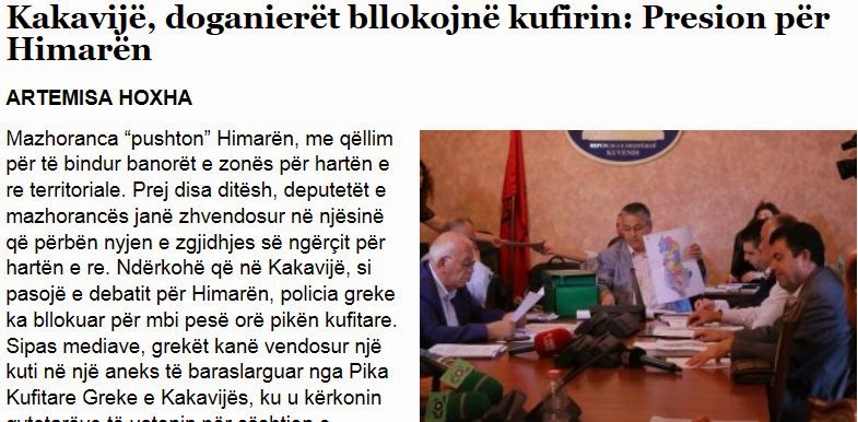«Σε ένα χαρτί έχουν γράψει, αν οι Αλβανοί είναι υπέρ ή κατά της ένωσης της Χιμάρας με τη Βρανίστι, όπως προβλέπει ο νέος εδαφικός χάρτης στην περιοχή», σημειώνει το δημοσίευμα.