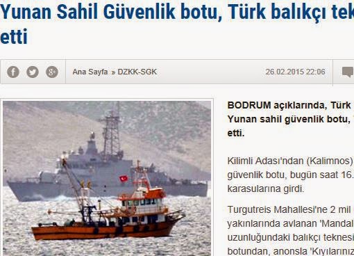 Τούρκικο δημοσίευμα αναφέρει ότι σκάφος της ελληνικής ακτοφυλακής κοντά στην Κάλυμνο μπήκε στα τουρκικά χωρικά ύδατα και παρενόχλησε Τούρκους ψαράδες.