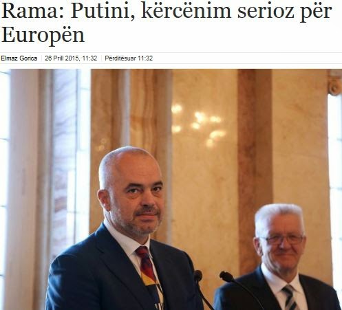 Έντι Ράμα: Κατά τη γνώμη μου, ο Πούτιν επιδιώκει μια στρατηγική, που είναι απόλυτη απειλή για την Ευρώπη. Αυτή είναι μια σαρωτική στρατηγική που υλοποιήθηκε με την προσάρτηση της Κριμαίας και την παρέμβαση στην Ανατολική Ουκρανία. Η Ευρώπη θα πρέπει να ανταποκριθεί. Αλλά η Ευρώπη εξακολουθεί να έχει άλλα προβλήματα: τη διεθνή τρομοκρατία και τον ισλαμικό ριζοσπαστισμό. Ως εκ τούτου, η Ευρωπαϊκή Ένωση χρειάζεται μια προσέγγιση στα Βαλκάνια. Χρειάζεται μια τολμηρή και επιθετική στρατηγική για την επέκταση. Μεγαλύτερη, και όχι περιορισμένη, αυτή είναι η σωστή απάντηση κατά αυτήν την περίοδο.