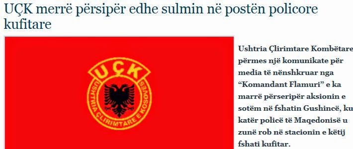 Ο Εθνικός Απελευθερωτικός Στρατός των Αλβανών (UÇK), με δελτίο Τύπου που υπογράφεται από τον “Komandant Flamuri” ανέλαβε τη δράση στο χωριό Gushincë, όπου τέσσερις αστυνομικοί του νοτιοσλαβικού κράτους- FYROM, συνελήφθησαν και απήχθηκαν πρόσκαιρα, από το αστυνομικό σταθμό του χωριού.
