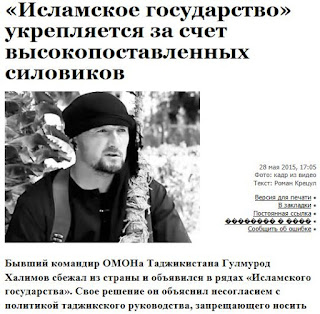 Ο πρώην διοικητής των ομάδων ασφάλειας του Τατζικιστάν Γκουλμούροντ Χαλίμοφ εγκατέλειψε τη χώρα του και εμφανίστηκε στις τάξεις του «ισλαμικού κράτους», γράφει η ρωσική ‘vzglyad’.