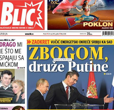 Στην πρώτη της σελίδα, υπάρχει μια παλιότερη συνάντηση του Βούτσιτς με τον Πούτιν και το άρθρο φέρει τον τίτλο: « Αντίο σύντροφε Πούτιν»