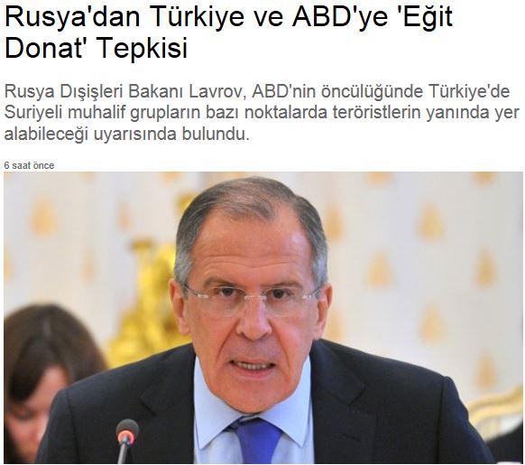 Ο Ρώσος υπουργός Εξωτερικών, Σεργκέι Λαβρόφ, αναφερόμενος στην κατάρτιση ομάδων της συριακής αντιπολίτευσης στην Τουρκία, υπό την ηγεσία των Αμερικανών, δήλωσε ότι είναι μια κοντόφθαλμη προσέγγιση στα γεγονότα της Συρίας και προειδοποίησε ότι οι ομάδες αυτές μπορεί να εξελιχθούν σε τρομοκράτες όπως οι μετέχοντες στο ‘ισλαμικό κράτος’.