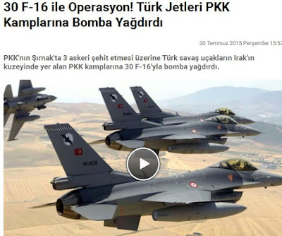 Μετά το θάνατο τριών Τούρκων στρατιωτών και ενός αξιωματικού, στην επαρχία Σιρνάκ, τριάντα μαχητικά αεροσκάφη F-16 πραγματοποίησαν επιδρομές σε στρατόπεδα των Κούρδων ανταρτών του Κουρδικού Εργατικού Κόμματος, στο βόρειο Ιράκ τα οποία βομβάρδισαν με σφοδρότητα.