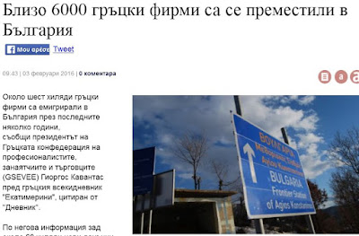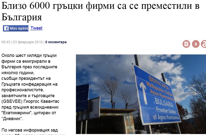 Τα νέα μέτρα που προωθεί η κυβέρνηση του ΣΥΡΙΖΑ της Ελλάδας , με τις προγραμματιζόμενες επιβαρύνσεις στο φορολογικό σύστημα και στην κοινωνική ασφάλιση, θα εντείνουν τη μαζική μετακίνηση των ελληνικών επιχειρήσεων στη Βουλγαρία, προκειμένου να επιβιώσουν.