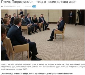 Ο Ρώσος πρόεδρος, Βλαντίμιρ Πούτιν, πιστεύει ότι στη Ρωσία δεν μπορεί να υπάρξει καμία άλλη ενωτική ιδέα από τον Πατριωτισμό.