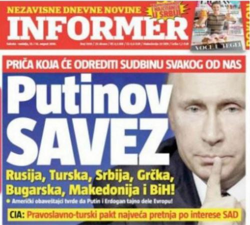 Σύμφωνα με το δημοσίευμα που επικαλείται άρθρο της σερβικής εφημερίδας «Informer» (φωτό), καλά πληροφορημένες διπλωματικές πηγές, αναφέρουν ότι μια νέα συμμαχία έρχεται με τη Σερβία, την Ελλάδα, τα Σκόπια, τη Βουλγαρία και τη Βοσνία-Ερζεγοβίνη.