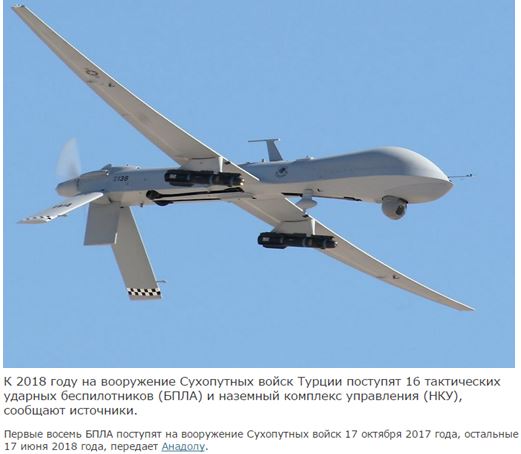 Μέχρι το 2018, οι τουρκικές χερσαίες δυνάμεις θα αποκτήσουν 16 επιθετικά μη επανδρωμένα εναέρια οχήματα επίγειου ελέγχου, όπως αναφέρει σχετικό δημοσίευμα στη ρωσική γλώσσα.