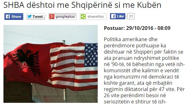 «Οι ΗΠΑ απέτυχαν στην Αλβανία όπως στην Κούβα», είναι το τίτλος του άρθρου
