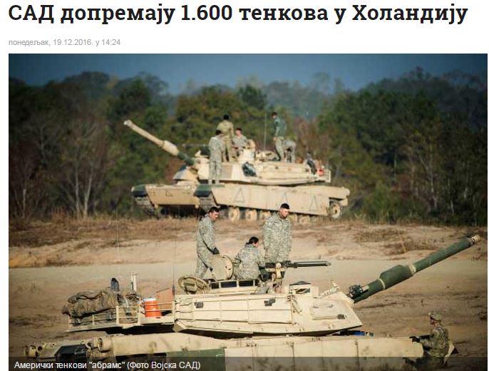 Σύμφωνα με το πρακτορείο ‘Tanjug’ που επικαλείται το βρετανικό δημοσίευμα, η νέα διακυβέρνηση του Ντόναλντ Τραμπ είπε ότι θα βελτιώσει τις σχέσεις της με τη Ρωσία, αλλά δεν υπάρχει σχετική αναφορά για αλλαγή του σχεδίου μεταφοράς όπλων στην Ευρώπη.