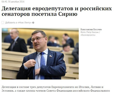 «Αντιπροσωπεία Ρώσων γερουσιαστών και βουλευτών του Ευρωπαϊκού Κοινοβουλίου επισκέπτονται τη Συρία» (στη φωτό ο Κωνσταντίν Κοσάτσεφ)