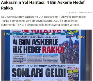"Κατά την επίσκεψη του Αμερικανού αρχηγού του Γενικού Επιτελείου Στρατού και του προέδρου της CIA στην Τουρκία, η «επιχείρηση Ράκα» έχει λάβει νέες διαστάσεις.