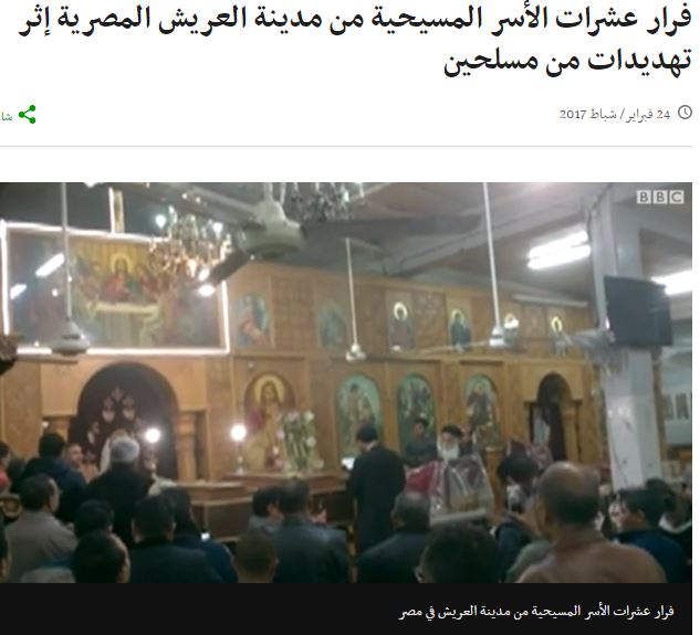 Περίπου 40 οικογένειες Κοπτών Χριστιανών εγκατέλειψαν τη βόρειο χερσόνησο του Σινά, και συγκεκριμένα την πόλη Ελ Αρίς, μετά την έξαρση των επιθέσεων των ισλαμιστών ανταρτών στην περιοχή, σημειώνει το BBC στην αραβική του έκδοση.