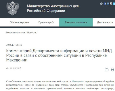 «Η Δύση υποστηρίζοντας την αλβανική μειονότητα προσπαθεί να φέρει στην εξουσία στα Σκόπια την αντιπολίτευση, η οποία έχει προσυπογράψει τις απαιτήσεις των Αλβανών που οδηγούν στη συνταγματική υπονόμευση της χώρας.