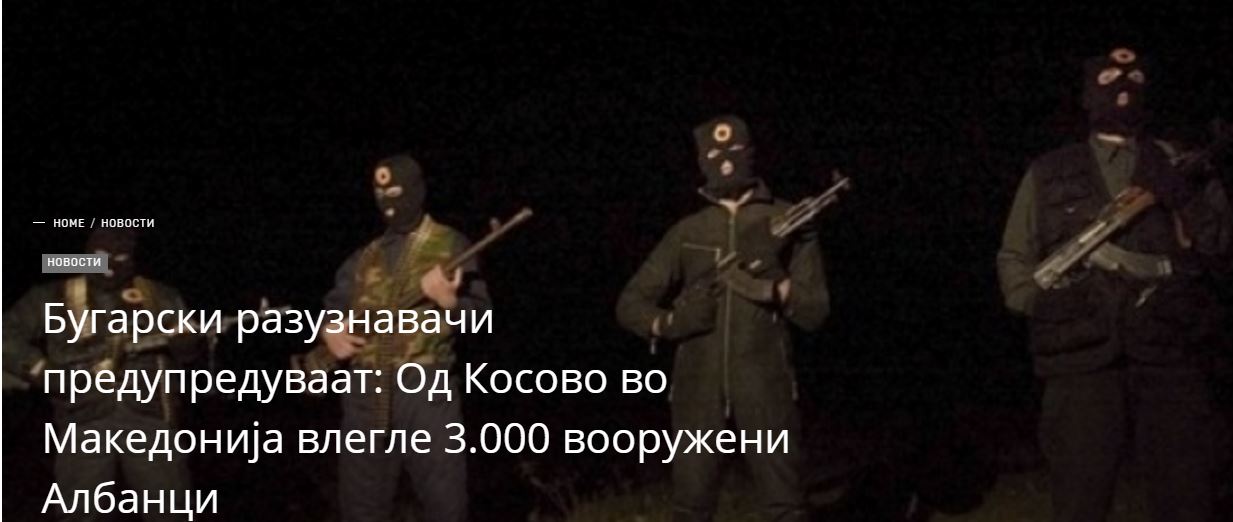 Ο αναλυτής Σάσα Μπορόεβιτς επικαλούμενος στοιχεία από τις βουλγαρικές μυστικές υπηρεσίες ανέφερε ότι 3.000 ένοπλοι Αλβανοί εισήλθαν στο έδαφος των Σκοπίων, σημειώνει η σλαβική ιστοσελίδα ‘arena’.