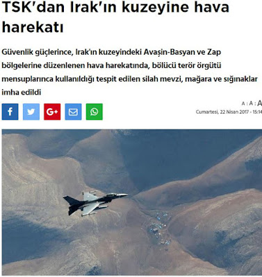 Η τουρκική πολεμική αεροπορία βομβάρδισε, πάλι, στην περιοχή Αβασίν Μπασιάν καθώς και στην Ζαπ του βορείου Ιράκ,όπου όπως σημειώνει το τούρκικο δημοσίευμα, οι Κούρδοι