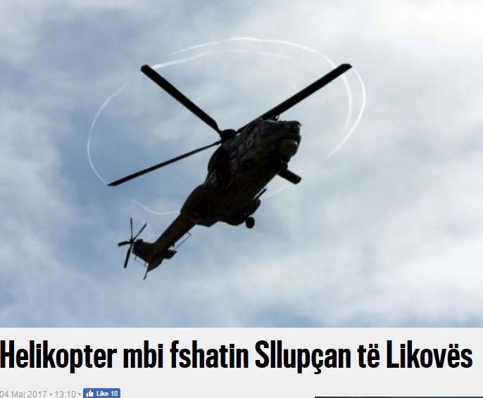 Οι κάτοικοι του χωριού Σλούπτσανε στο δήμο Λίπκοβο των Σκοπίων ανέφεραν ότι επικρατεί ανησυχία εξαιτίας των πτήσεων ελικοπτέρων πάνω από τα σπίτια τους στις 11 σήμερα το πρωί.