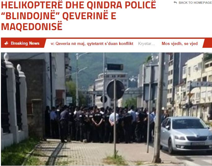 Εκατοντάδες αστυνομικοί έχουν αναπτυχθεί στα κύρια κυβερνητικά κτήρια των Σκοπίων κατά τη διάρκεια της ημέρας, ενώ στρατιωτικά ελικόπτερα πετούν πάνω από αυτά.