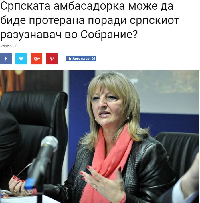 " Η πρέσβειρα της Σερβίας θα μπορούσε να απελαθεί επειδή αξιωματούχος των σερβικών πληροφοριών ήταν στο κοινοβούλιο"