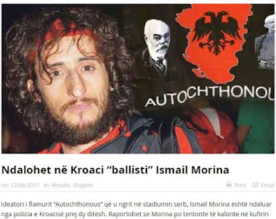 Ο Αλβανός Ισμαήλ Μορίνα,δημιουργός της σημαίας της Μεγάλης Αλβανίας, «Αυτόχθων» [‘Autochthonous’], που έγινε το σύμβολο των Αλβανών εθνικιστών και είχε παρουσιασθεί με drone σε στάδιο της Σερβίας, συνελήφθη από την αστυνομία της Κροατίας πριν από δύο ημέρες.
