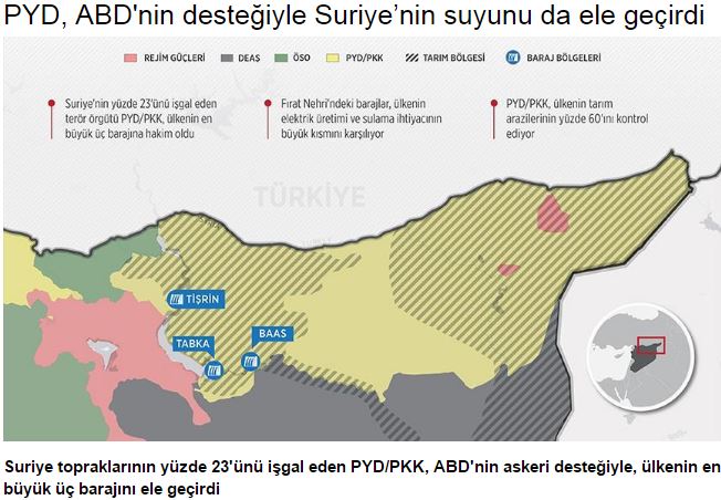 Οι Κούρδοι της Συρίας (PYD/YPG) έχουν καταλάβει το 23 τοις εκατό των εδαφών της Συρίας και μεταξύ αυτών είναι τα τρία μεγαλύτερα φράγματα. Αυτό επιτεύχθηκε με την στρατιωτική υποστήριξη των Αμερικανών, γράφει τούρκικο δημοσίευμα.