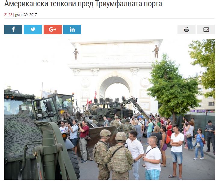 Πριν από την άσκηση, χθες, αμερικανικά θωρακισμένα οχήματα ‘έκαναν βόλτα’ στο κέντρο της πόλης των Σκοπίων, σταμάτησαν στην πλατεία των Σκοπίων για να τους δει ο κόσμος.
