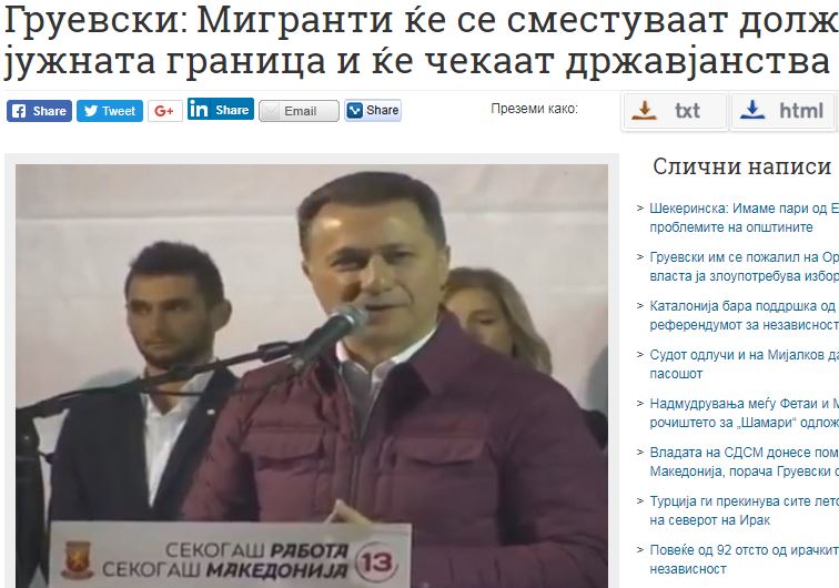 «Γκρούεφσκι: Οι μετανάστες θα τοποθετηθούν κατά μήκος των νότιων συνόρων και θα περιμένουν την υπηκοότητα», γράφει το δημοσίευμα