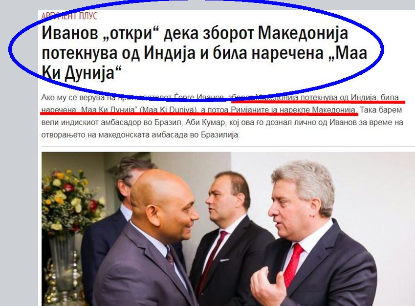 «Ο Ιβάνοφ ‘ανακάλυψε’ ότι η λέξη Μακεδονία προέρχεται από την Ινδία και ονομαζόταν ‘Μαα Κι Ντουνιά’, λέει το σκοπιανό δημοσίευμα του mkd.mk